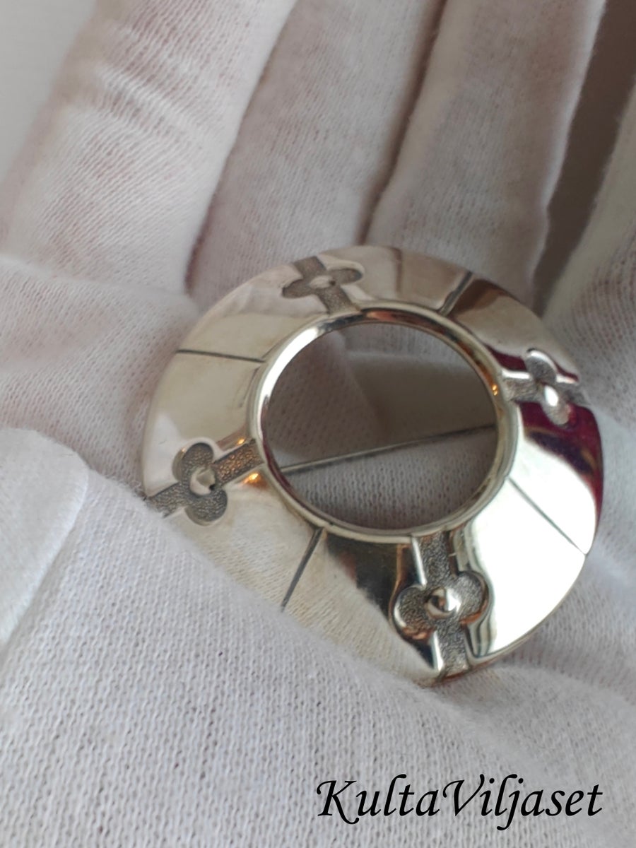 Hopeinen solki, jonka halkaisija 4,3cm, valmistettu Helsingissä 60/70-luvulla
